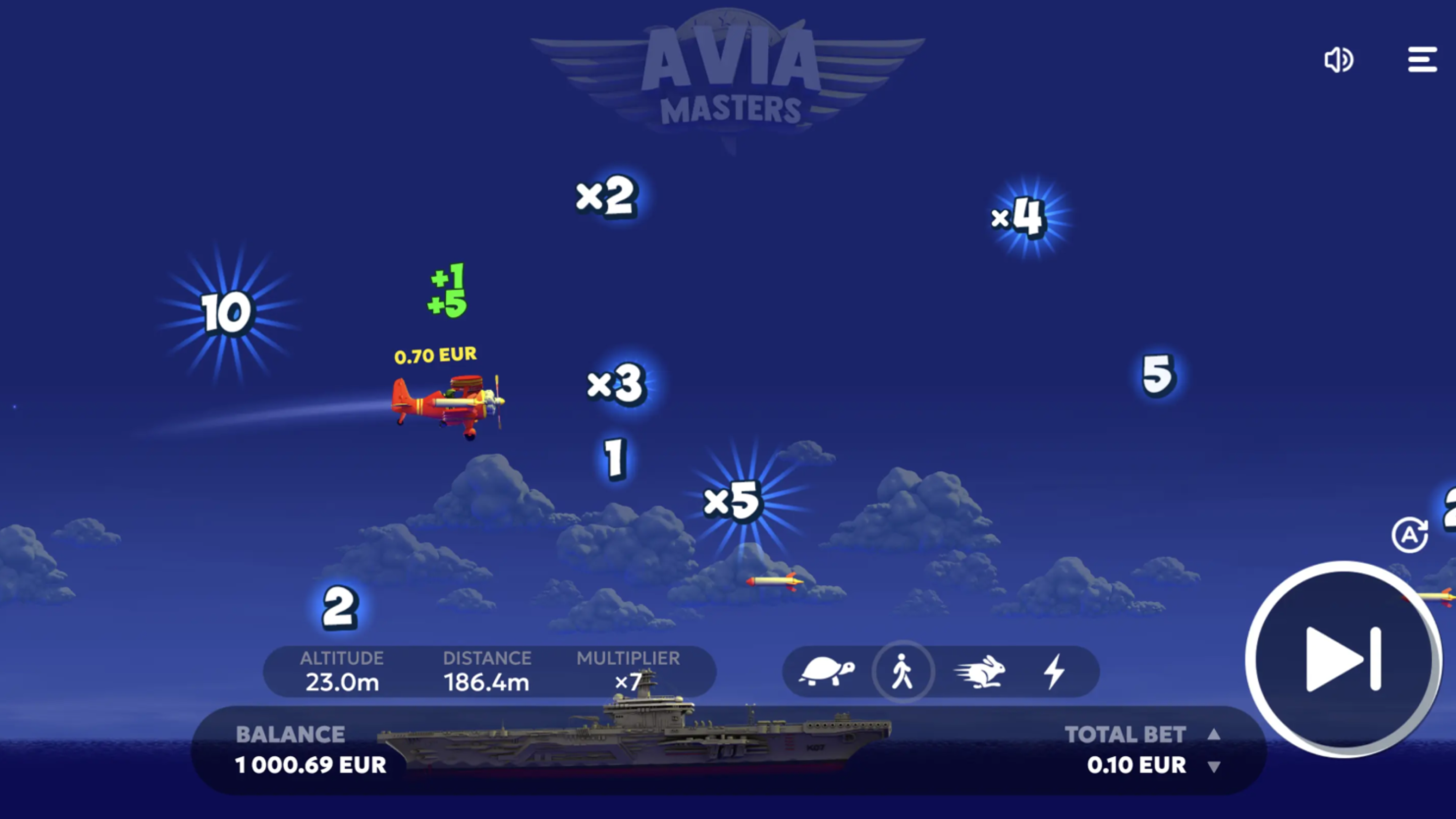 Ziel des Spiels ist es, das Flugzeug so lange wie möglich in der Luft zu halten, möglichst viele schwebende Multiplikatoren einzusammeln und sicher zu landen, bevor es abstürzt. Auf deinem Flug triffst du auf zwei unterschiedliche Arten von Multiplikatoren, durch die deine Flughöhe steigt und sich dein Guthaben erhöht oder multipliziert. 💸